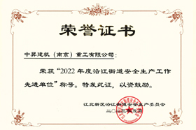 為表彰先進(jìn),進(jìn)一步推動全街安全生產(chǎn)工作,經(jīng)街道安委會研究決定,對中昇建機(jī)(南京)重工有限公司等5家安全生產(chǎn)工作先進(jìn)單位。